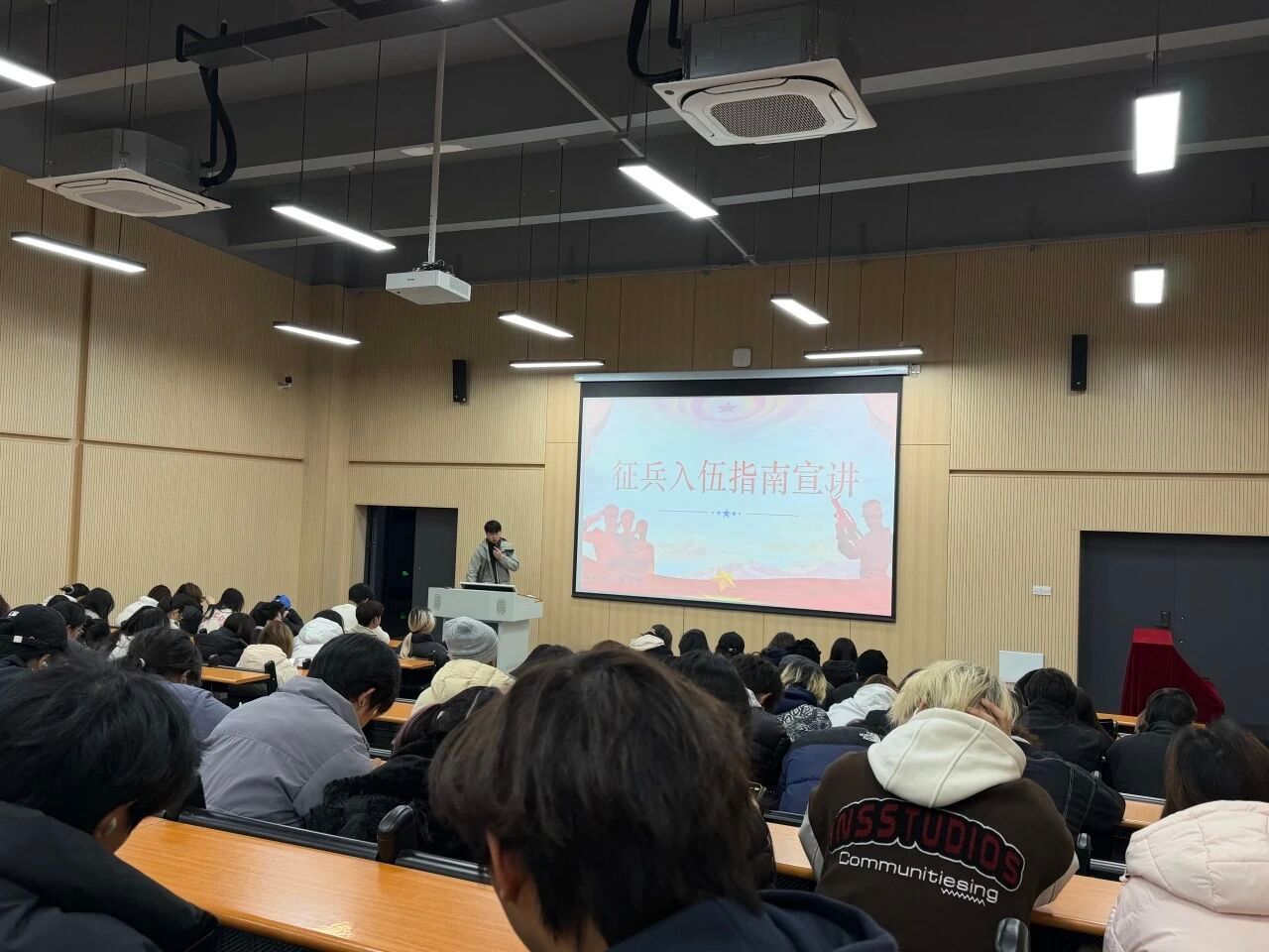此次征兵宣讲会的成功举办,不仅让学子们对征兵政策有了全面、准确的认知,更有效点燃了大家携笔从戎、报效国家的热情。青春逢盛世,参军正当时。愿我院有志青年把握时代机遇,以青春之名赴军营之约,用赤诚之心担报国之责,让青春在保家卫国的征程中绽放璀璨光彩,用一身戎装书写无悔人生篇章!
