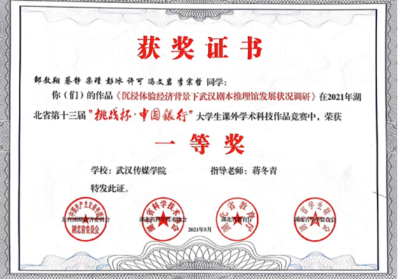 近三年,文化产业管理学生在全国大学生A类赛事中斩获国家级奖项30余项、省级奖项100余项。仅2023-2024学年,就有111人次获得教育部A类赛事省级及以上奖项,占文化产业管理专业学生数(231人)的48.05%。在“夜上黄鹤楼”“知音号”“莫愁村”等沉浸式文旅项目中,师生团队深度参与创意策划与内容制作,获行业和社会高度认可。