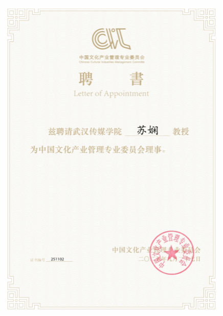 近日,中国文化产业管理专业委员会2025年会长与常务理事会议审议结果正式公布,yl6809永利集团苏娴教授、蒋冬青教授凭借多年学术沉淀与行业实践积累,成功当选该委员会理事。
