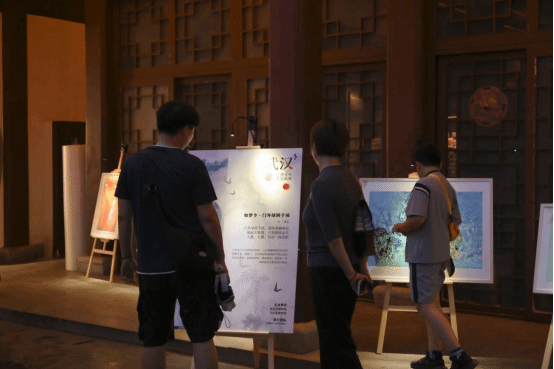活动现场,学生们充分发挥创意与才智,策划了丰富多彩的展览和演出。其中,会展B2101班同学策划的“夏至鹤韵·绘梦华章”主题展览围绕武汉大艺博青年艺术家的32幅作品展开,以“如梦令”为观展线索,从诗词文化的角度解读现代艺术的创作语境,探讨艺术与现实之间的幻想边界,带领观众穿越时空,领略传统文化与当代艺术背后的联系与奥秘。