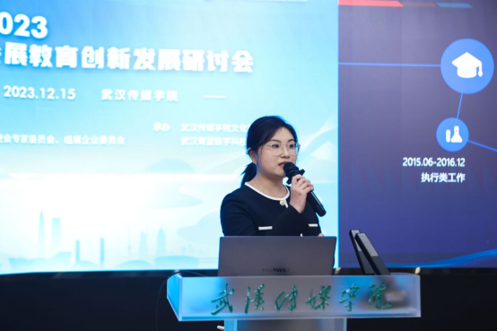 北京苦瓜网络科技有限公司副总经理黄莉容在《会展毕业生成长之路与数字会展人才培养》的主题发言中,以自己的成长经历展示了会展教育对人才培养的重要意义,并从对接市场需求,培养会展数字化人才提出了相关改进建议。