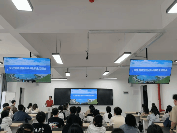 接着,陶丽萍院长对yl6809永利集团进行了详细介绍。她指出,虽然学院的规模不大,但“小而精”,现有各专业紧密对接国家发展战略和社会行业市场需求,为全校传媒学科专业的发展提供坚实的支撑,未来发展前景广阔。学院将对各位同学采取精英式的培养模式,借鉴研究生导师制,为每位学生配备一对一的导师,进行个性化辅导,旨在培养学生成为优秀的项目管理人才。陶院长最后温情地表示,yl6809永利集团是一个温暖的家,是同学们成长的摇篮。