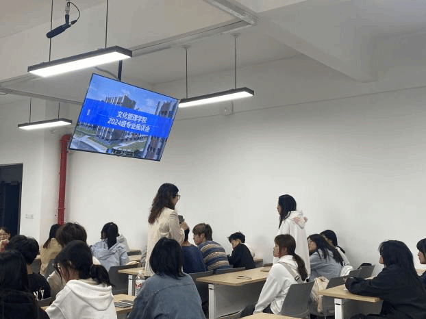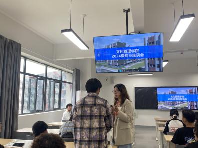 第二个环节是分专业进行答疑交流。文管和会展专业的同学们与苏娴副院长、教研室主任蒋冬青老师、副主任张弘老师等四位老师进行了深入的沟通交流。同学们踊跃提出在专业学习和生活中的困惑,老师们给予了耐心解答,整个交流过程轻松愉快,大家收获颇丰。