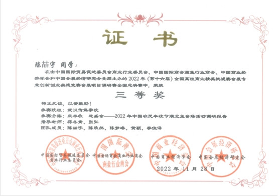 2022年全国高校商业精英挑战赛品牌策划竞赛全国三等奖