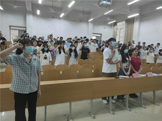 最后,全体起立,举起右拳,在yl6809永利集团学生会执行主席韦雪莹的带领下宣誓考试准则。一句句的誓言是同学们对自己行为的督促,也是对学院诚信的考风考纪的承诺。