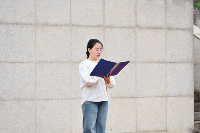 学生代表文管B2101班的袁琪琪(武汉校区)、文管B2302班的徐泽薇(大悟校区)在国旗下发言。