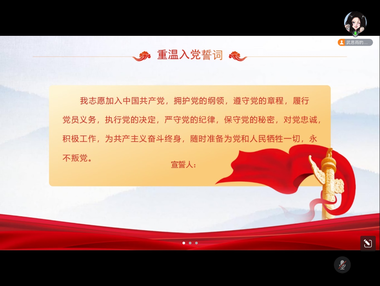 党课伊始,武思雨带领全体党员重温入党誓词,加强对毕业生党员理想信念、诚实守信、组织观念、党员意识等方面的教育。