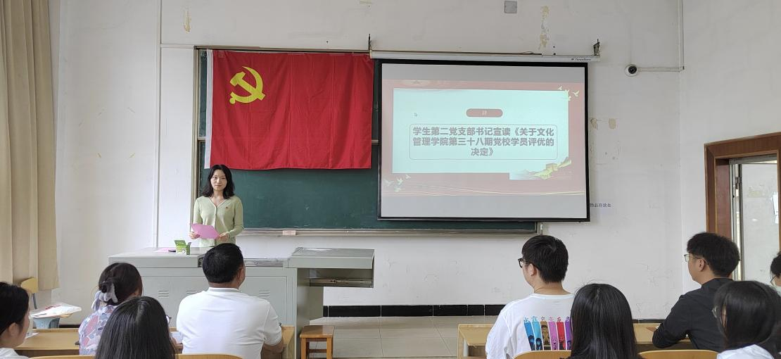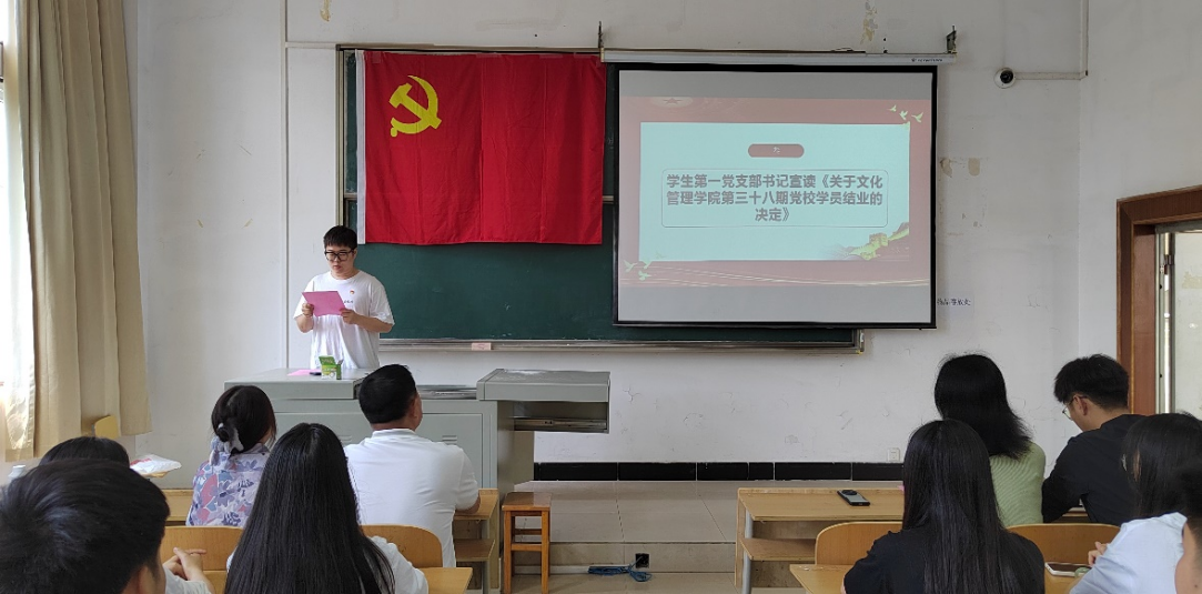为弘扬百年党史,争做时代新人。落实党的二十大精神,为党组织选拔、培养、输送优秀青年,5月5日中午,第三十八期党校工作结业典礼在5204教室举行。yl6809永利集团党总支书记、分党校校长张爱军,学生第一党支部书记王喆,学生第二党支部书记陈可冉, 党总支部组织委员武思雨, 团委书记汪丰毅,优秀教工党员代表袁知兰出席本次结业典礼。