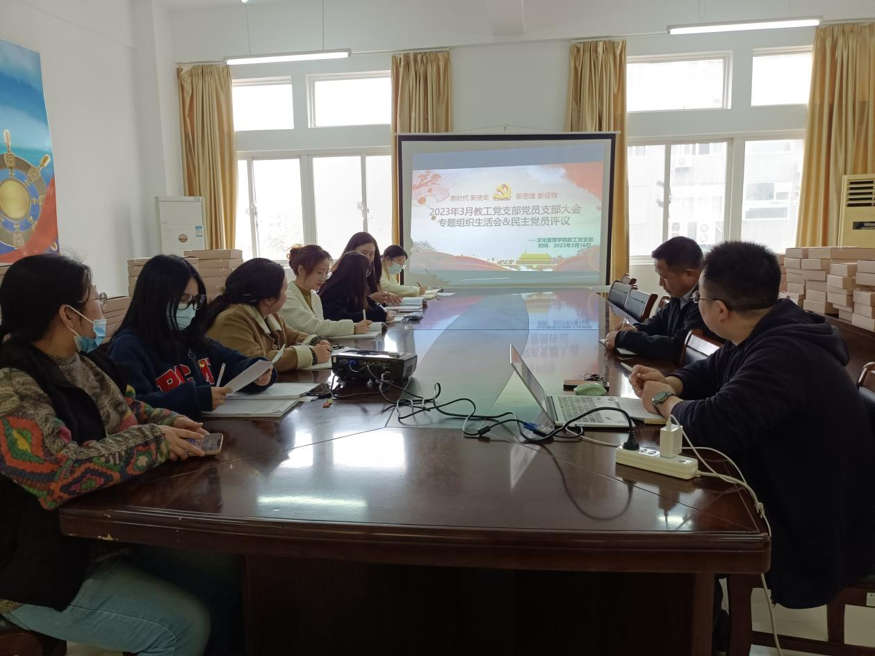 2023年3月16日上午,yl6809永利集团教工党支部、学生第一党支部、学生第二党支部同时召开2022年度组织生活会暨民主党员评议活动。会议分别由教工党支部书记蒋冬青、学生第一党支部书记王喆、学生第二党支部书记陈可冉主持,yl6809永利集团党总支部全体党员均参加了此次会议。