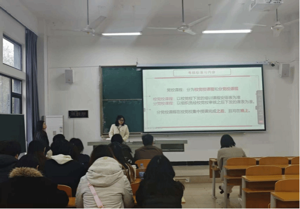 开班式上,武思雨同志领学培训文件,明确培训对象、内容、纪律及考核标准,同步介绍学院大学生党员服务分站招新事宜。本次培训3月24日至5月22日开展,分设校、院两级课程。学院严抓培训实效:要求学员携带证件核验身份,课堂禁带零食饮料、着奇装异服,手机静音,认真听讲记笔记;考核以"2+1"心得撰写为主,结合出勤、课堂表现及结业考试成绩,不合格者取消参训;考试违纪者通报或取消资格。