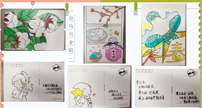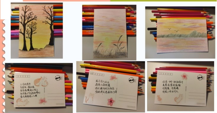 “获得优秀作品奖”的罗云倩、邓聪、何清清这三位同学依次分享了她们创意卡片的作品。创新的想法与大胆的绘制充分展现了同学们认真的态度。这不仅吸引了在座老师和同学们的目光,也赢得了阵阵掌声。