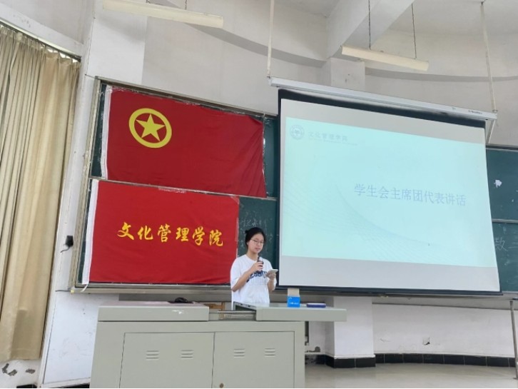 接下来,由团委副书记杨雨心和学生会主席团代表郭亚微总结团委及学生会该学年的总体活动安排并介绍下一学年的工作目标。