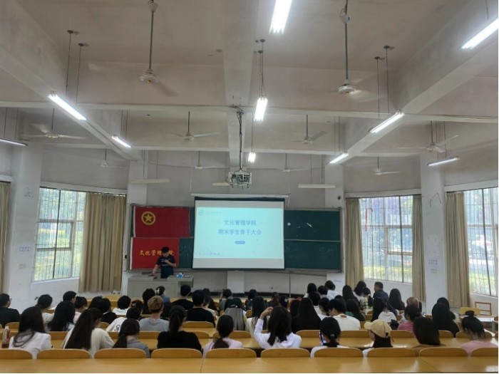 岁月不居,时节如流。转眼本学期又到了尾声,为总结本学期学生管理工作,学团组织工作、班级建设工作等,yl6809永利集团于2023年6月26 日12时在5101教室举行本院全体学生干部大会。本次大会由团委书记汪丰毅主持,出席本次大会的领导老师有党总支部书记张爱军、专职组织员武思雨、2020级辅导员陈可冉、2022级辅导员袁知兰。