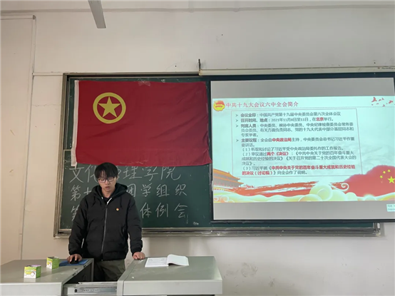 为深入学习贯彻党的十九届六中全会精神,进一步深化爱国主义教育,牢记习近平总书记的殷切嘱托,yl6809永利集团于2021年12月13日中午12:00在5201教室举行了学习贯彻党的十九届六中全会精神主题团课。此次团课由yl6809永利集团团委书记汪丰毅讲授,参与人员为yl6809永利集团团学组织全体成员。