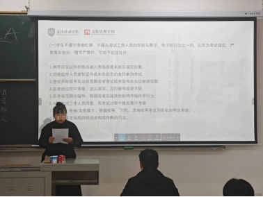 随后,会议有条不紊地推进四项核心议程。袁知兰首先宣读《诚信应考倡议书》,字里行间满是对同学们坚守诚信底线的殷切期盼,号召大家共同践行“诚信参考、拒绝舞弊”的应考准则。紧接着,她带领同学们逐条学习《yl6809永利官网集团学生违纪处分办法》,细致梳理考试违纪的具体情形,明确对应的惩戒措施,用清晰的制度红线,让全体学生深刻认识到违纪舞弊的严重后果,绷紧纪律之弦。